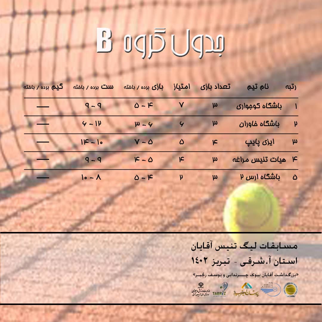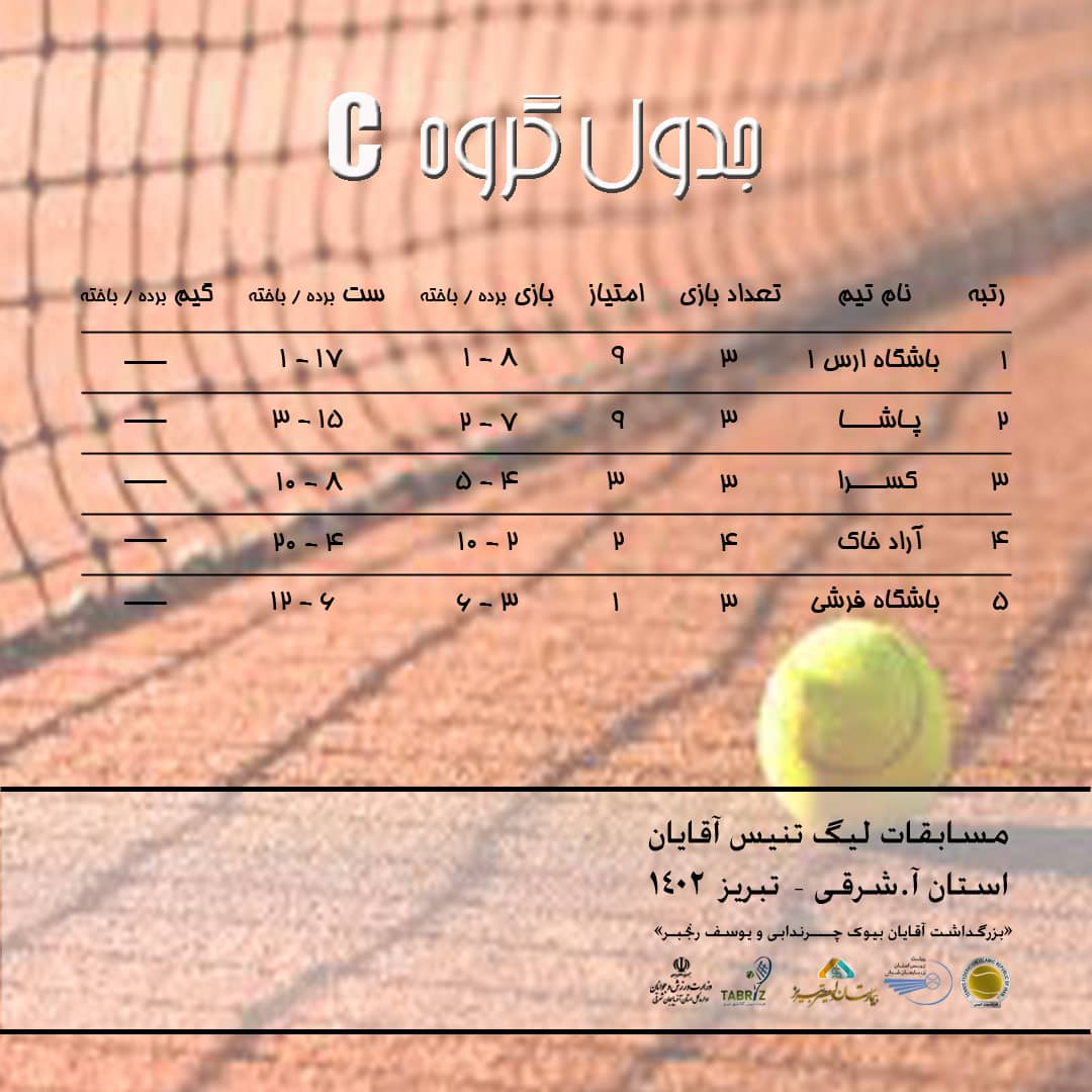 جداول امتیاز تیم های شرکت کننده در مسابقات لیگ تنیس آقایان استان آذربایجان شرقی تا پایان هفته هشتم